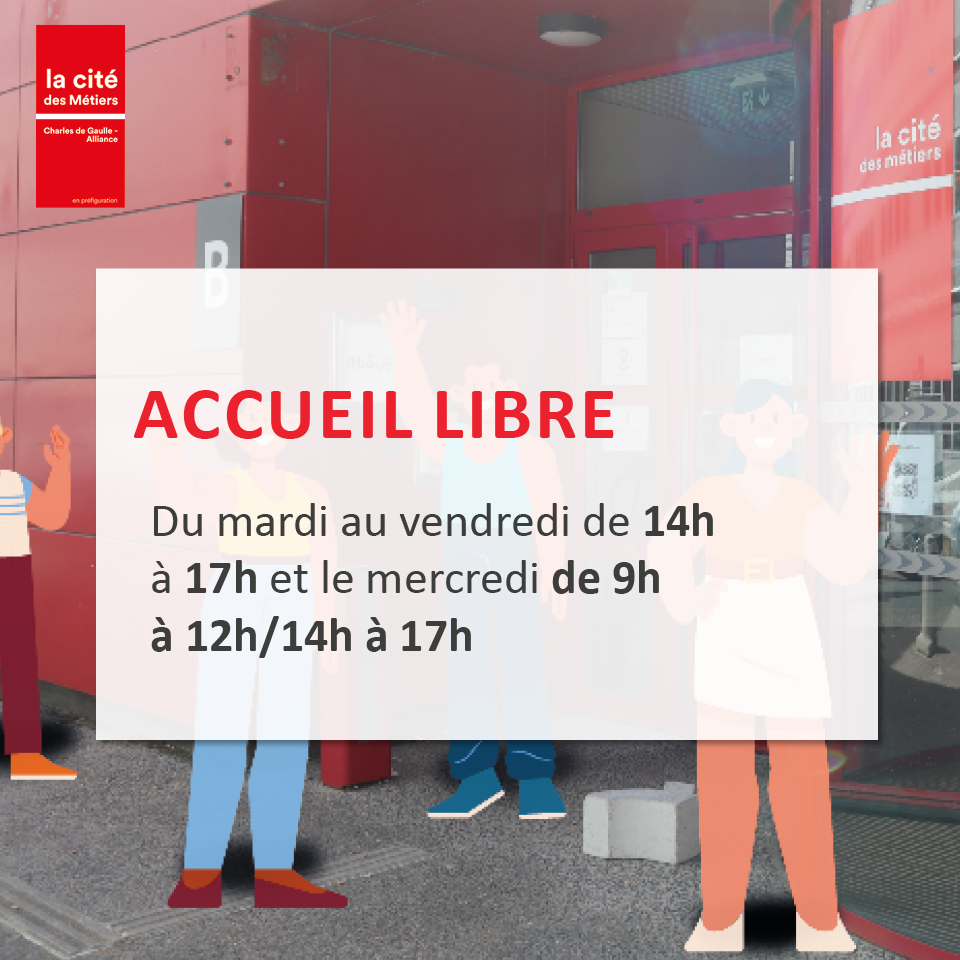 Du lundi au vendredi de 14h à 17 et les mercredis de 9h à 12h30 et de 14h à 17h, des professionnels partenaires de la Cité des métiers Charles de Gaulle - Alliance vous accueillent sans rendez-vous afin de vous faire découvrir les métiers !