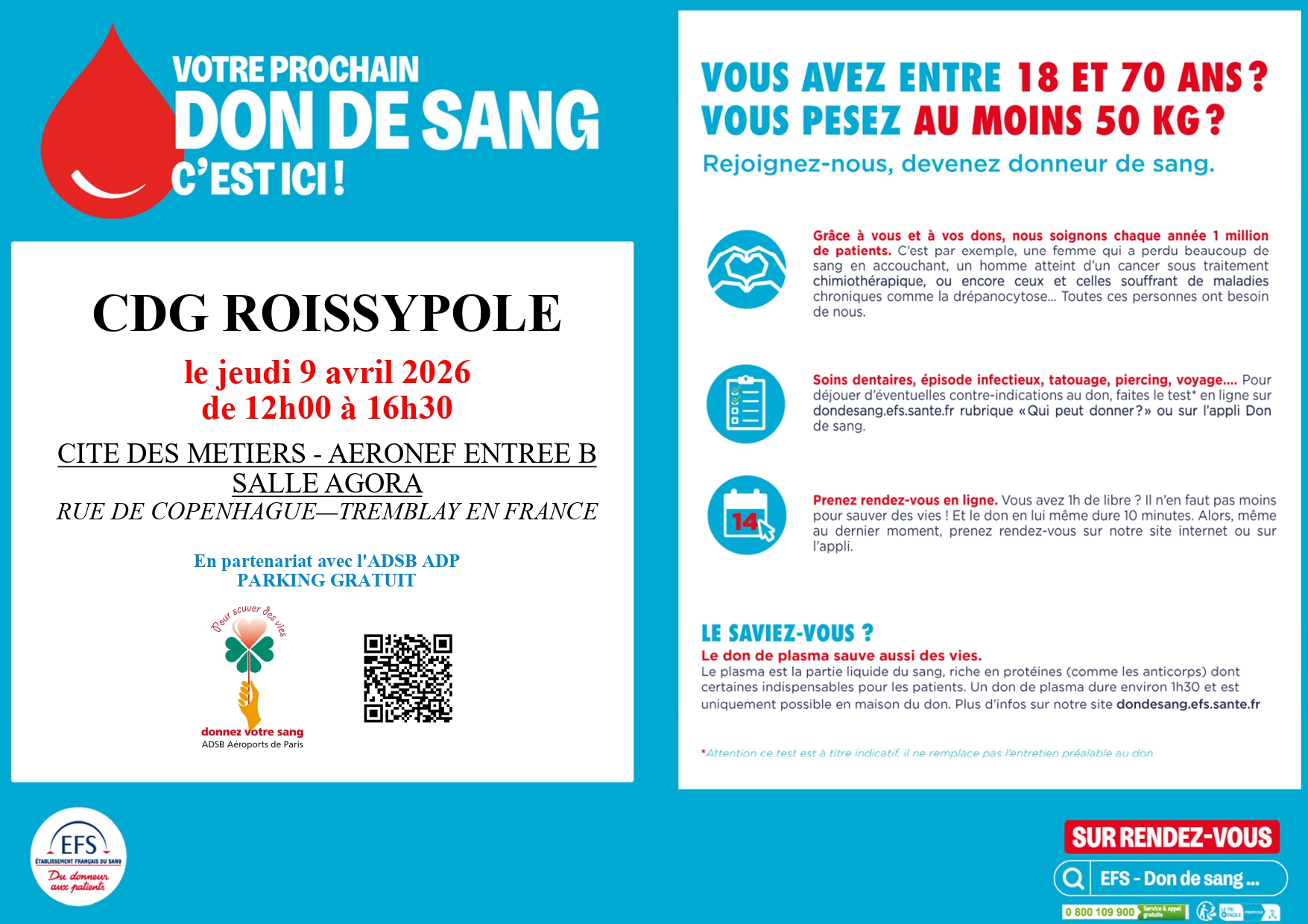 Réservez votre rendez-vous impérativement via ce lien : https://dondesang.efs.sante.fr/trouver-une-collecte